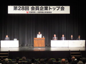 この会員企業トップ会は大阪同企連が行う主要事業のひとつで、会員企業トップ、担当者を含めて284人が出席しました。